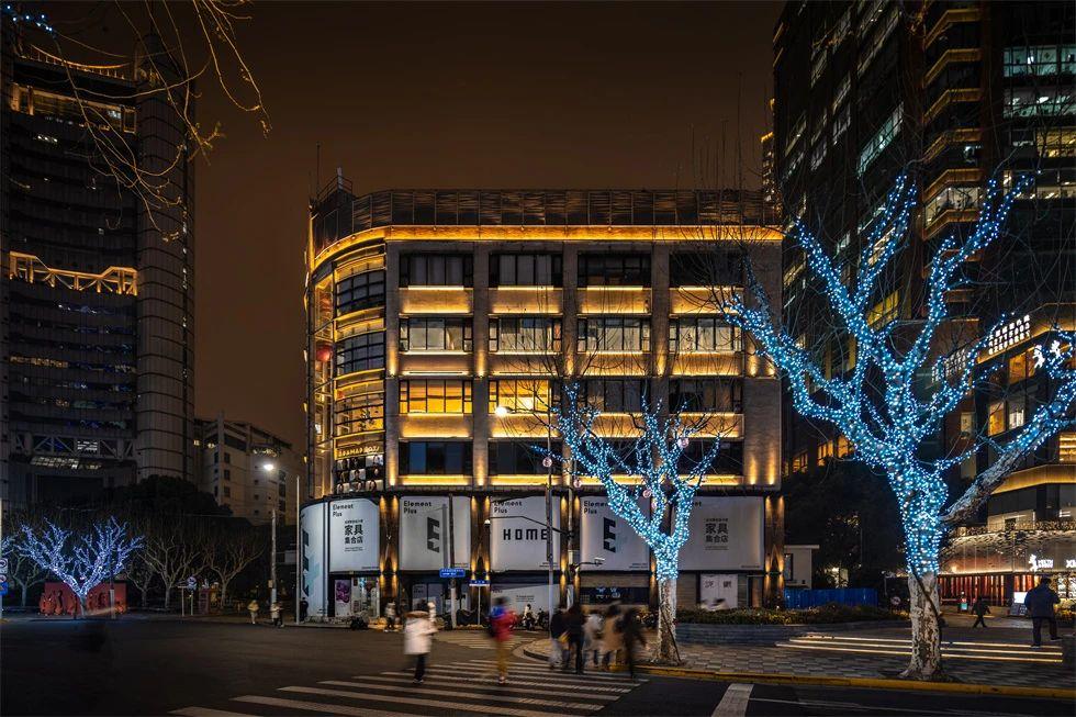 五月花商務中心的燈光改造以“融入與點亮”為核心理念。通過精準的立面投光技術,建筑的結構肌理被清晰勾勒,冷白色調燈光與周邊歷史建筑的暖光形成巧妙對比,既保持了商業街區的整體協調性,又彰顯了現代建筑的簡約與活力。